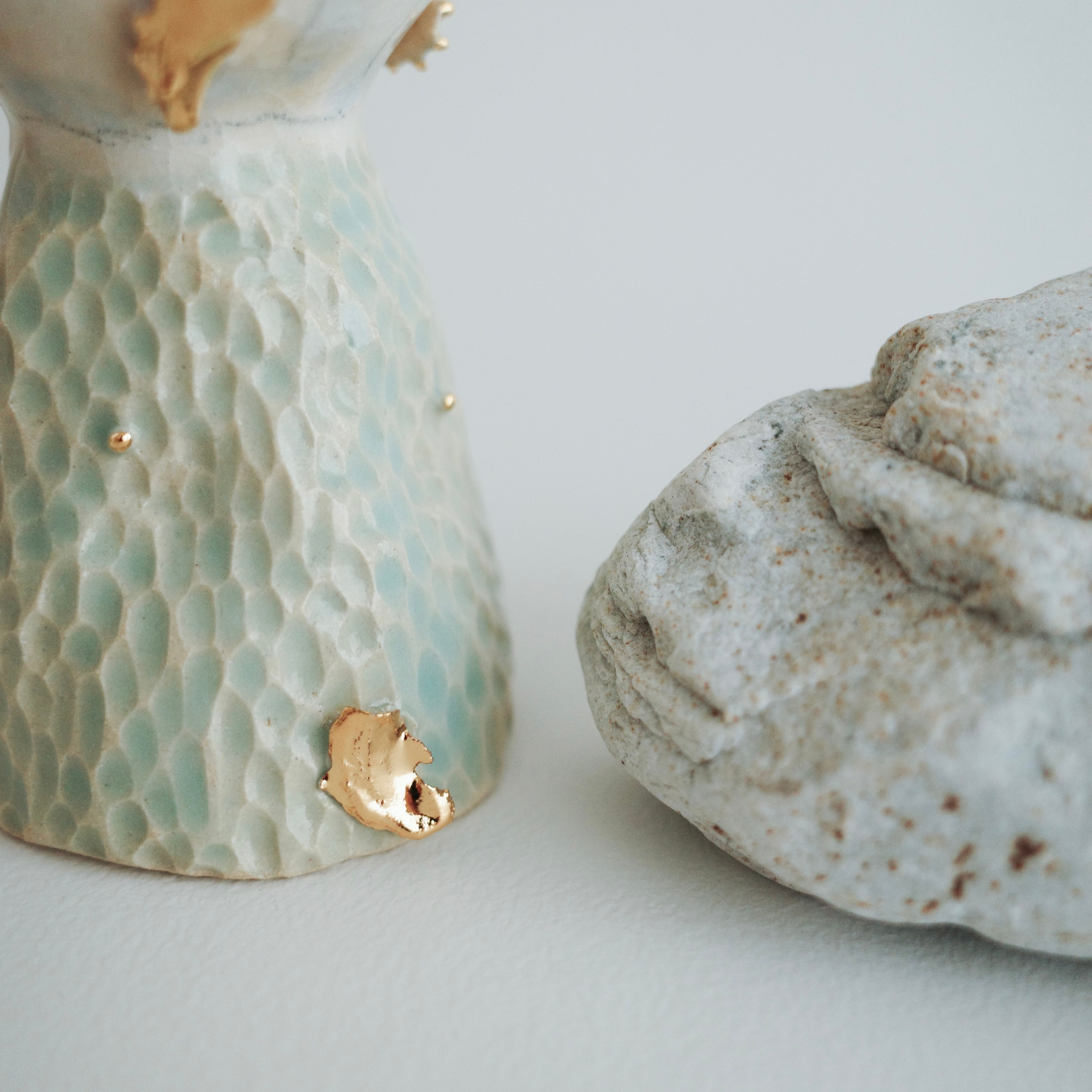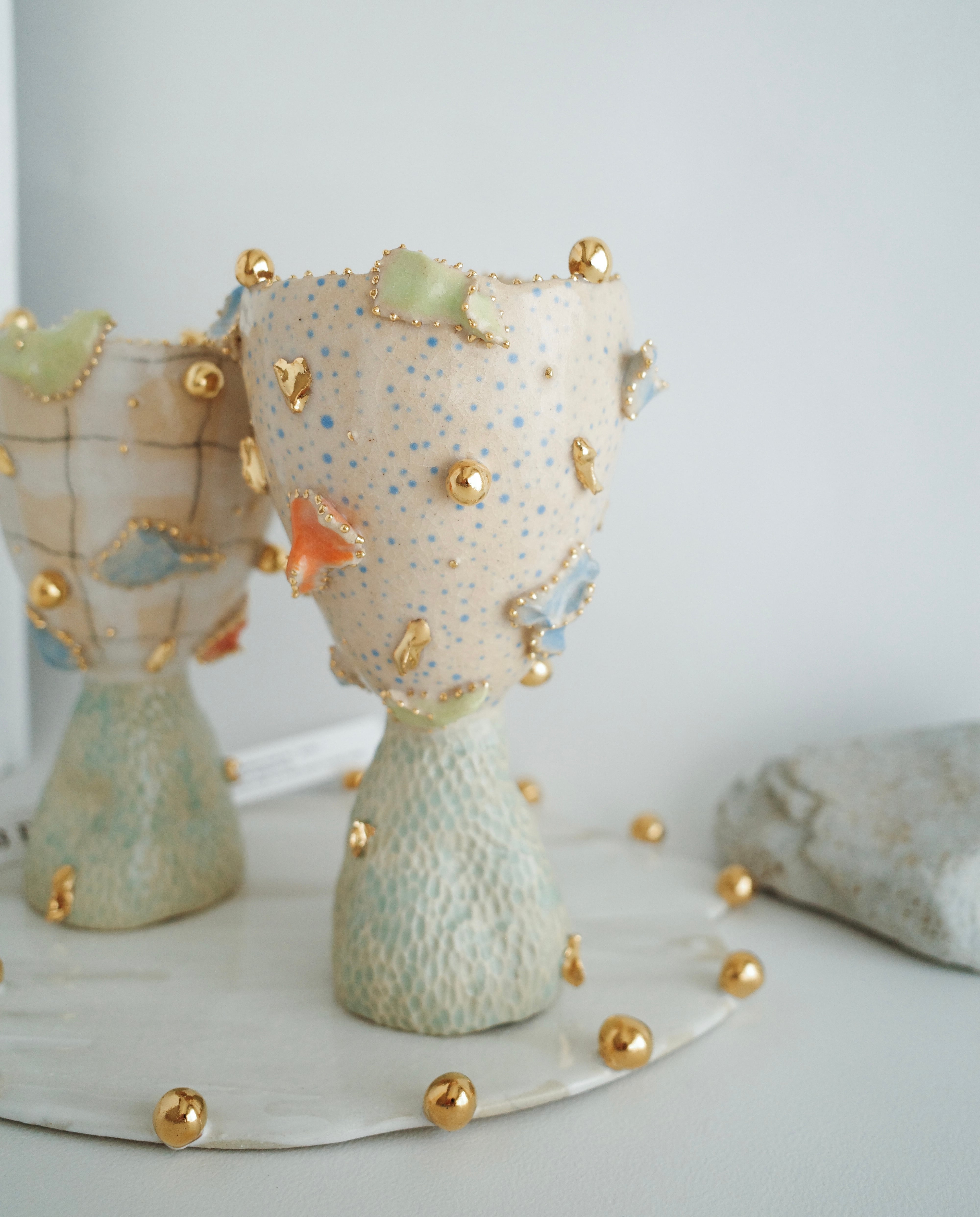 陶の宝石を纏ったゴブレット型のオブジェ。